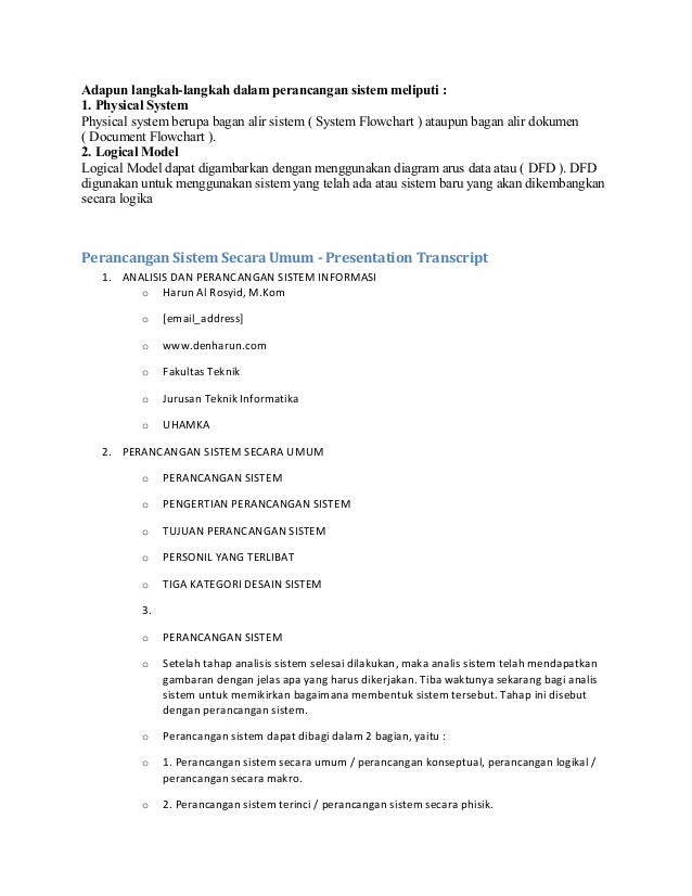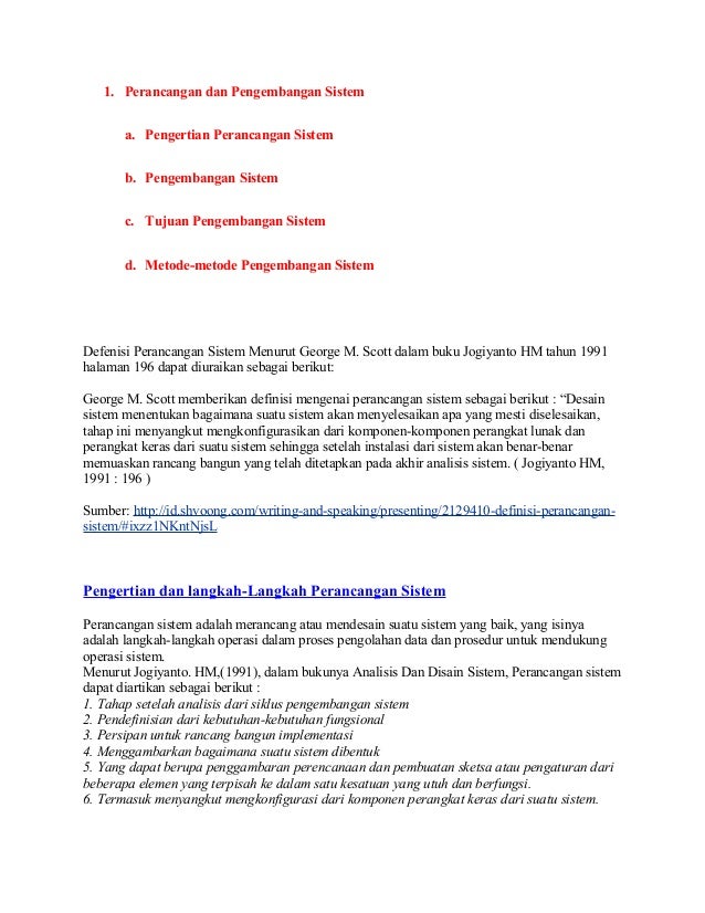 Perancangan menurut para ahli adalah : Definisi perancangan dalam buku yang berjudul sistem informasi manajemen konsep dan pengembangannya, menurut azhar susanto (2004:332) spesifikasi umum dan terinci dari pemecahan masalah berbasis computer yang telah dipilih selama tahap analisis. Definisi sebuah definisi formal menyatakan bahwa teritori melibatkan ruang fisik. Pengertian pengetahuan menurut para ahli. Menurut sutabri, sistem informasi ialah suatu sistem dalam suatu badan yang mengemukakan keperluan pengaturan negosiasi harian yang membantu fungsi menurut kertahadi, sistem informasi ialah media untuk menyediakan informasi sebegitu bentuk sehingga berguna bagi pemberinya.