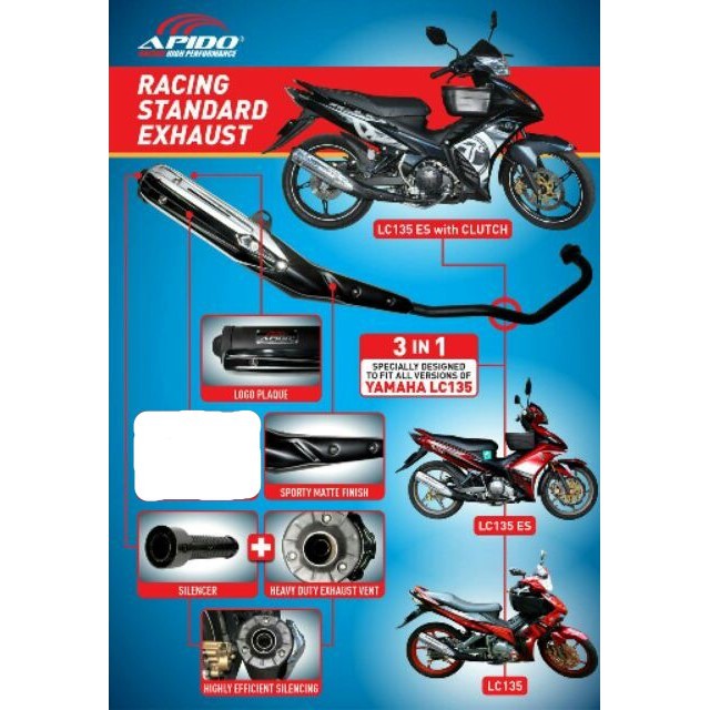 Exhaust Pipe Apido Racing Cutting Standard Yamaha Lc135 Shopee Malaysia from cf.shopee.com.my We did not find results for: Maybe you would like to learn more about one of these? Check spelling or type a new query.